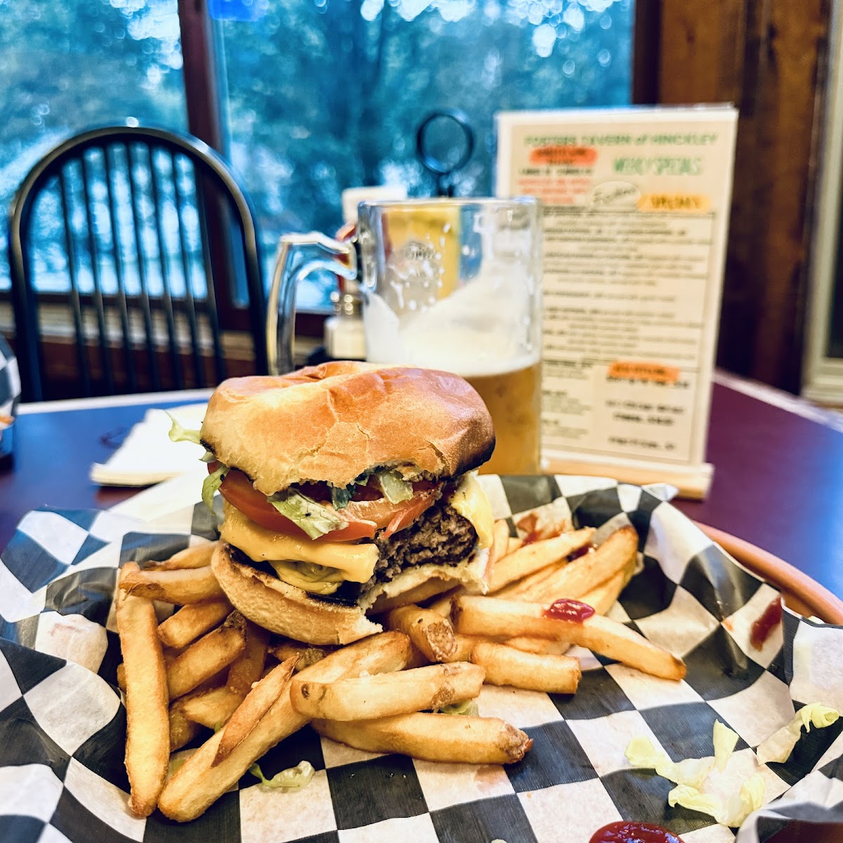 This is a very hidden gem in the heart of Hinckley. The staff welcomed us on entering and seated us in the front room overlooking the road. Our food and drink orders were taken quickly. As we waited, many people began entering. You could tell it is a meeting spot for the locals. Our food was delicious and the burgers were huge. I would have loved to have tried many more things on the menu.