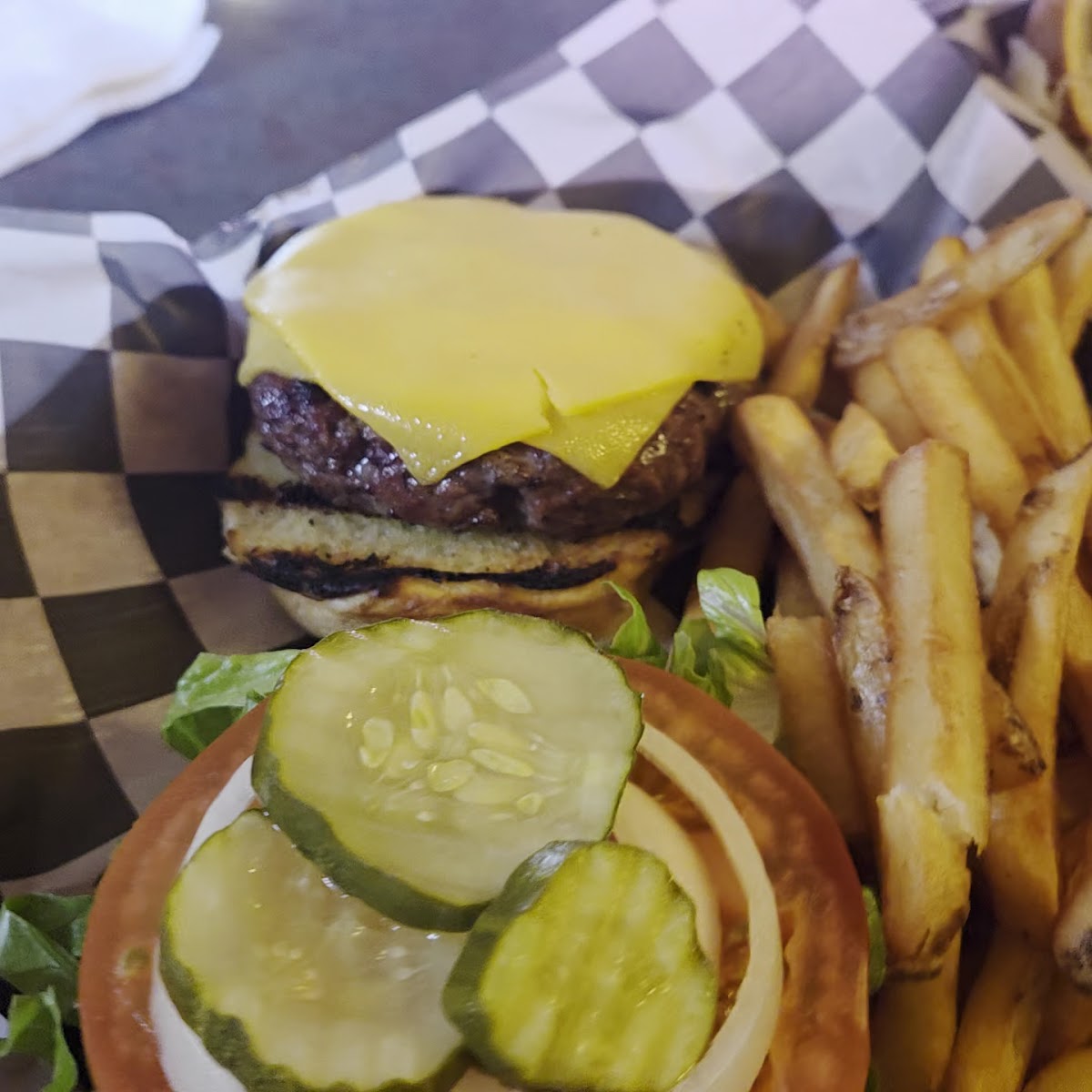 I had ordered my burger medium rare. When it came out it was rare IMO. So I sent it back. Francesca, our server couldn’t have been nicer about it. I had taken two bites before I decided I just couldn’t do it. I told her to nuke it a minute and it would be perfect. They completely redid the burger, bringing a new one out. I couldn’t believe they did that. A lot of places just send you the same product out, and usually overcooked. . Not in this case. Francesca couldn’t have been nicer and more attentive. The burger and fries were awesome. You could tell it was made from fresh ground beef and not some preformed frozen patties. The toppings were all fresh and packed high. I had to mash the heck out of it to get it in my mouth. The fries were awesome as well. Done just right. My wife’s burger was cooked to perfection. (She likes well done) and she had hush puppies which were very tasty. I had a cup of clam chowder to try and it too was exceptional. Large chucks of clams in a super tasty broth with celery and carrot. I highly recommend stopping by and trying them for yourself. We will stop by anytime we are close.