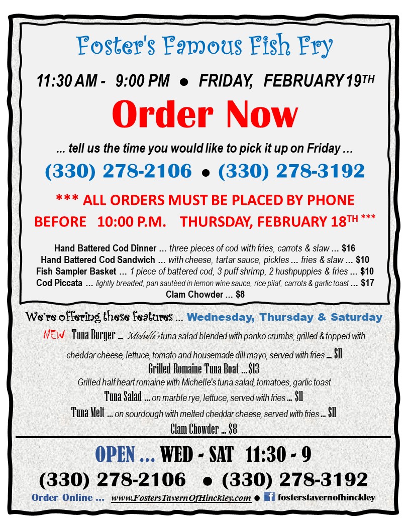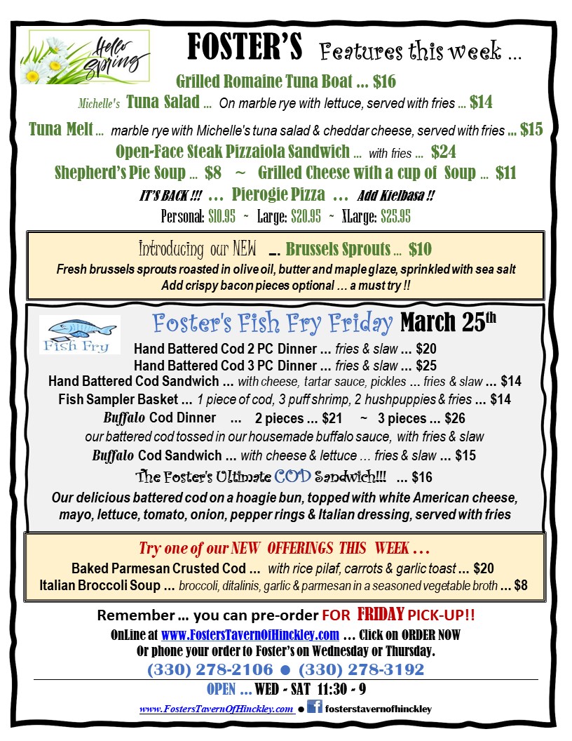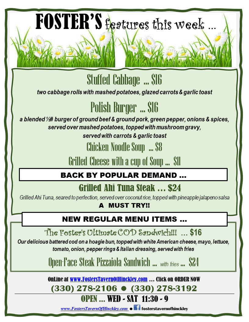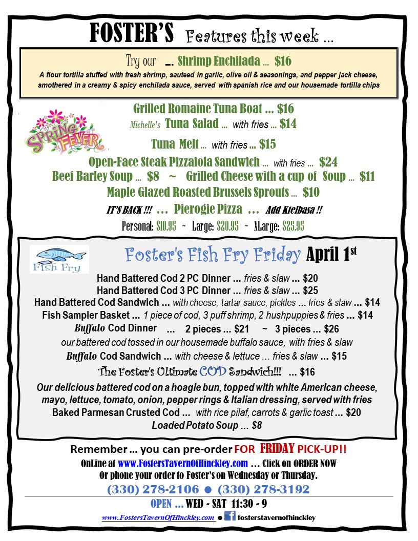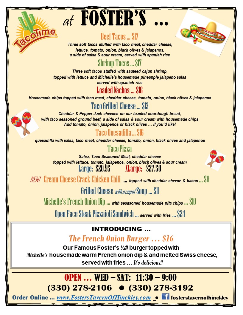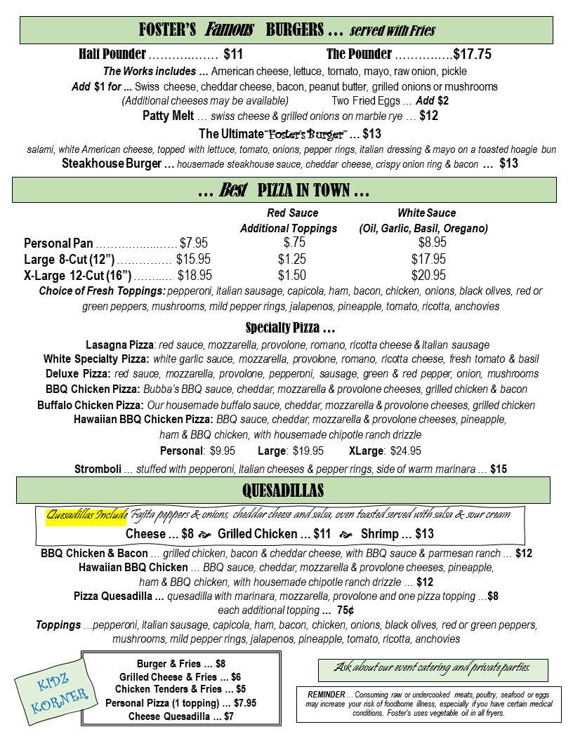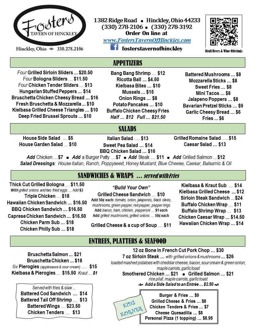 Fosters Tavern of Hinckley Menu
